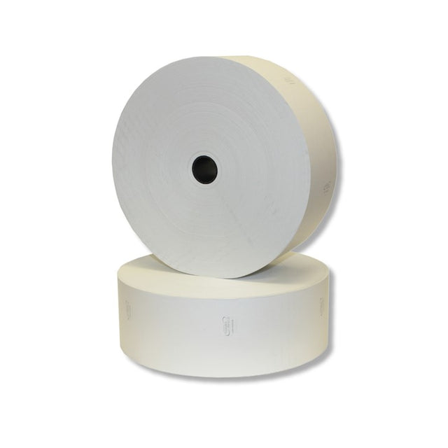 The standard size for these ATMs is 3.15" wide by 2,500' long. This high-capacity format provides thousands of receipts per roll, minimizing the need for frequent roll changes and ensuring consistent performance in busy banking environments.