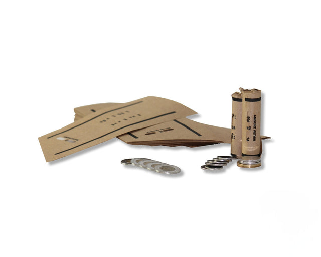 Our Canadian Universal Flat Window 7-in-1 Coin Wrappers are precisely engineered to accommodate all Canadian coin denominations: penny, nickel, dime, quarter, half-dollar, loonie, and toonie. They offer unparalleled universal coin rolling convenience, providing a reliable cash handling solution for financial institutions, retailers, and individuals alike.
